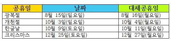 2021년 대체공휴일 : 2021년 광복절 대체휴일 '대체공휴일 전면 확대법' 추진 - 참가해주신 모든 음악인께 감사드리며 앞으로도 많은 관심과 성원 부탁드립니다.